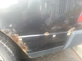 The driver's side rear lower quarters was the other. By far, this is the most corroded area of the car, but it is still just on the surface. A missing plastic clip that couldn't be found, but the trim piece was laying on the back dash, between the speakers.